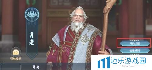 4、和月老对话后,选择开始求婚,使用道具向另一位玩家求婚后,等待同意即可完成结婚;