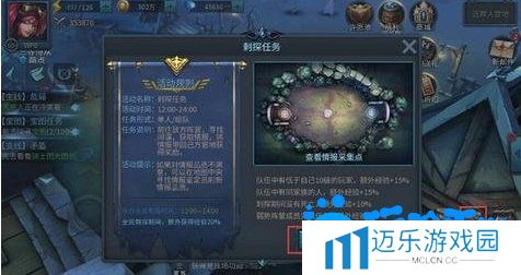 4、接取任务:在任务开启后,主城有提示,点击即可前往接取任务,也可以在主页右下角点击刺探任务前往,每天仅可参与3次任务