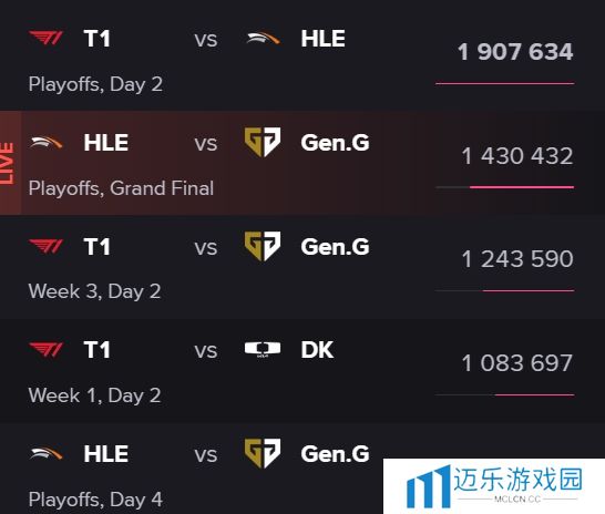 LCK赛事热度排名:HLEvsGEN决赛热度甚至不及Zeus复仇T1