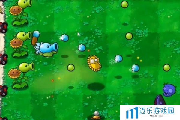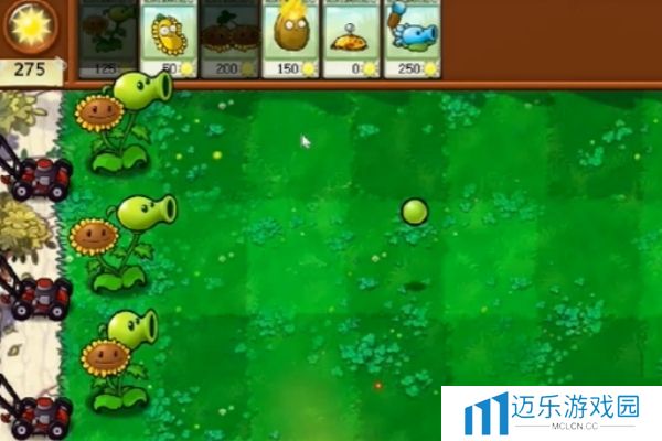 2、然后在第一排种植向日葵豌豆。