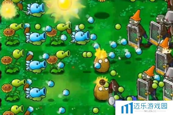 3、接下来,僵尸出现后种植香蒲、寒冰射手。
