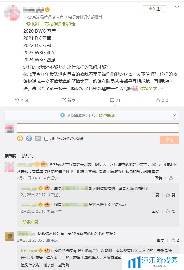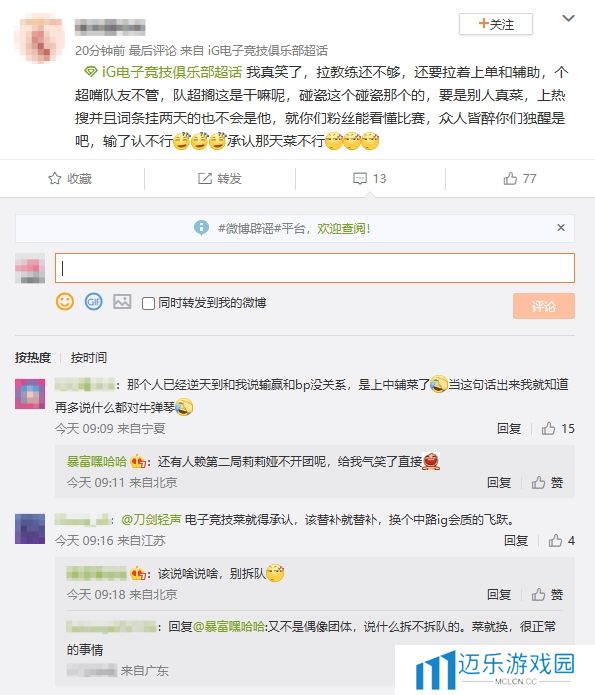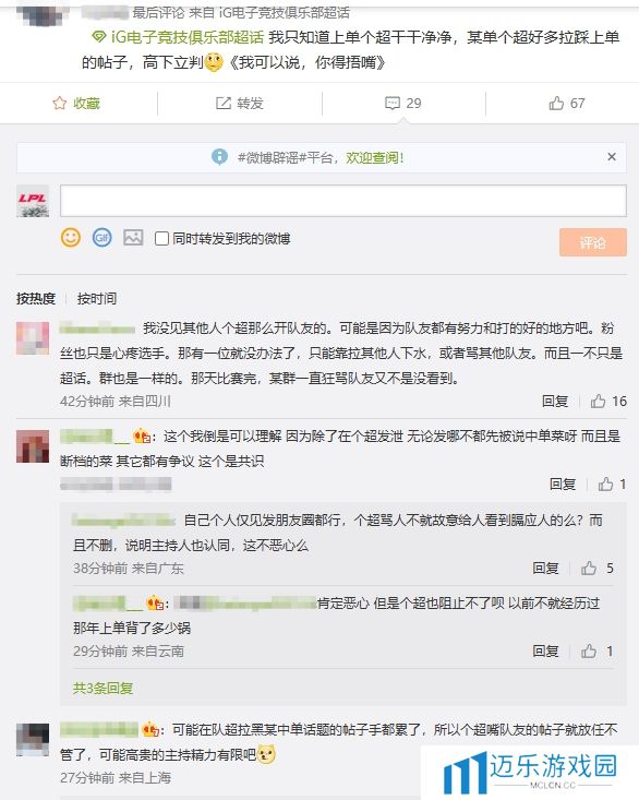乱成一锅粥了!iG超话疯狂屏蔽黑Rookie帖子 保留指责教练、上单帖