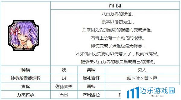 一血万杰百目鬼怎么样?百目鬼是银卡底的樱代鬼人,单从属性上看并不出色,技能也不是很好,但是立绘御姐范很不错,下面小编就为大家带来了百目鬼技能属性介绍。