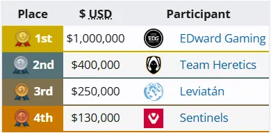 自VCT联赛成立以来,国际赛事首次四强由四大赛区各占一席