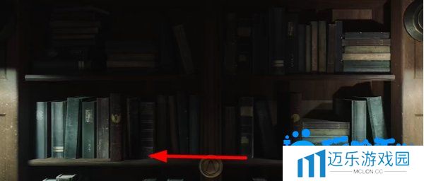 2、然后前往湖景酒店书柜,在书柜位置触发解谜;