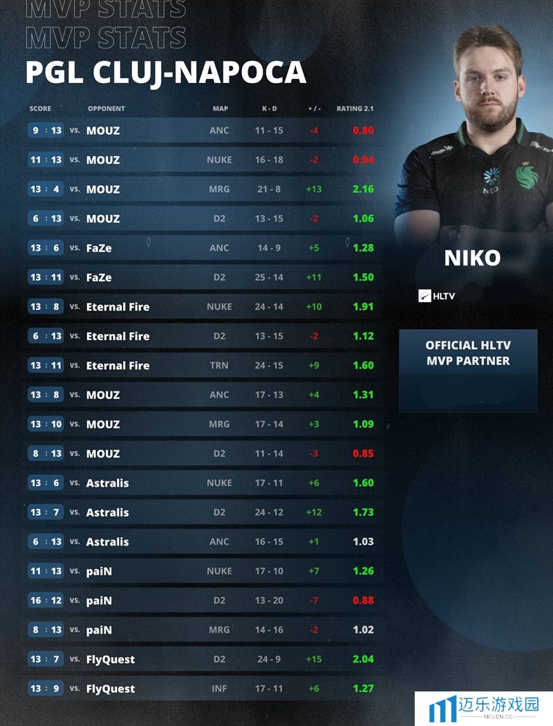 虽败犹荣!NiKo荣膺克卢日-纳波卡 2025赛事MVP