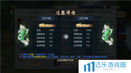 5、法器每提升1阶都可以提升三百点修为,另外防御、物理、法术、攻击等都会得到提升。