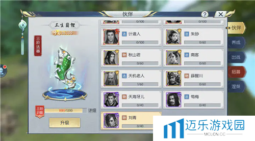 1、提升法器也比较简单,提升伙伴的修为即可提升法器的阶级;