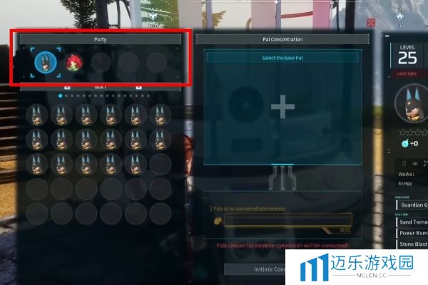 3、选中想要突破的帕鲁后,就可以在不在的队伍里帕鲁中选择要牺牲的帕鲁。