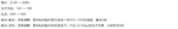 【解读】凝冰之息除了价格和属性的微调之外,被动还改为普攻也可以触发,有点像寒霜袭侵的Ap版,当然,数值同样会大幅度下调。
