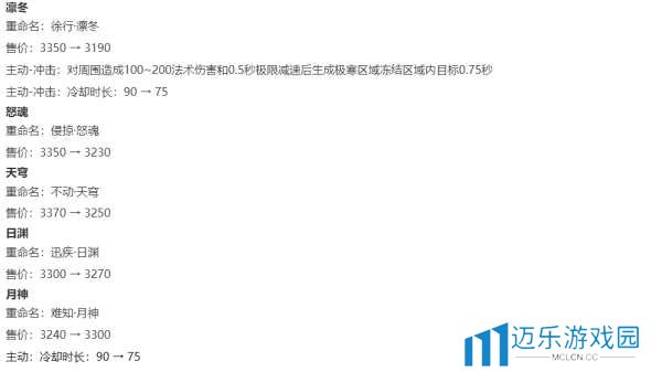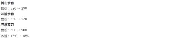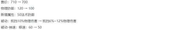 除了以上60件装备改动之外,还有4位英雄有所调整。
