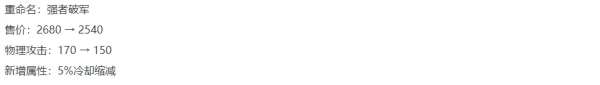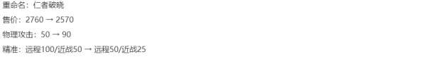 【解读】旧版的破晓被删除了,彻底改名为仁者破晓,除了价格又降低190金币之外,还提升了40点Ad,当然,精准效果的收益也下滑了50%。