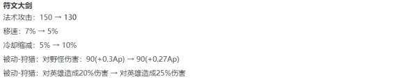 【解读】三级蓝刀主要是降低了20Ap+2%移速+被动0.03Ap加成,作为补偿,则会增加5%CD和对英雄的5%转化伤害。