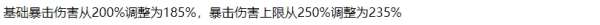 所有英雄的基础暴伤(不含装备+铭文)从200%降低至185%,最高暴伤也从250%降低至235%。