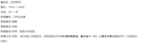 【解读】旧版的反伤刺甲被删除了,彻底改名为反伤韧甲。