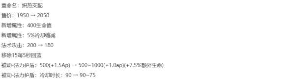 显然,策划的目的,也是想拉高炽热支配的兼容性,使得后期的法师能多一件保命装选择,不再需要锁定死辉月。