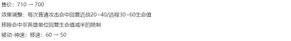 原本近战普攻可以回复30点,现在改为20~40点,远程普攻回复40点,则改为30~60点,还移除了非英雄单位减半的限制。
