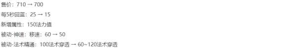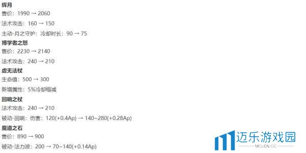 【解读】还有辉月+博学者之怒+虚无法杖+回响之杖+魔道之石,在数值或者价格上也有微调。