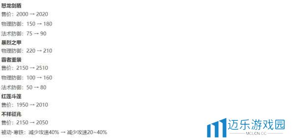 【解读】还有怒龙剑盾(黄盾)+暴烈之甲+霸者重装+红莲斗篷+不祥征兆,在数值或者价格上也有微调。