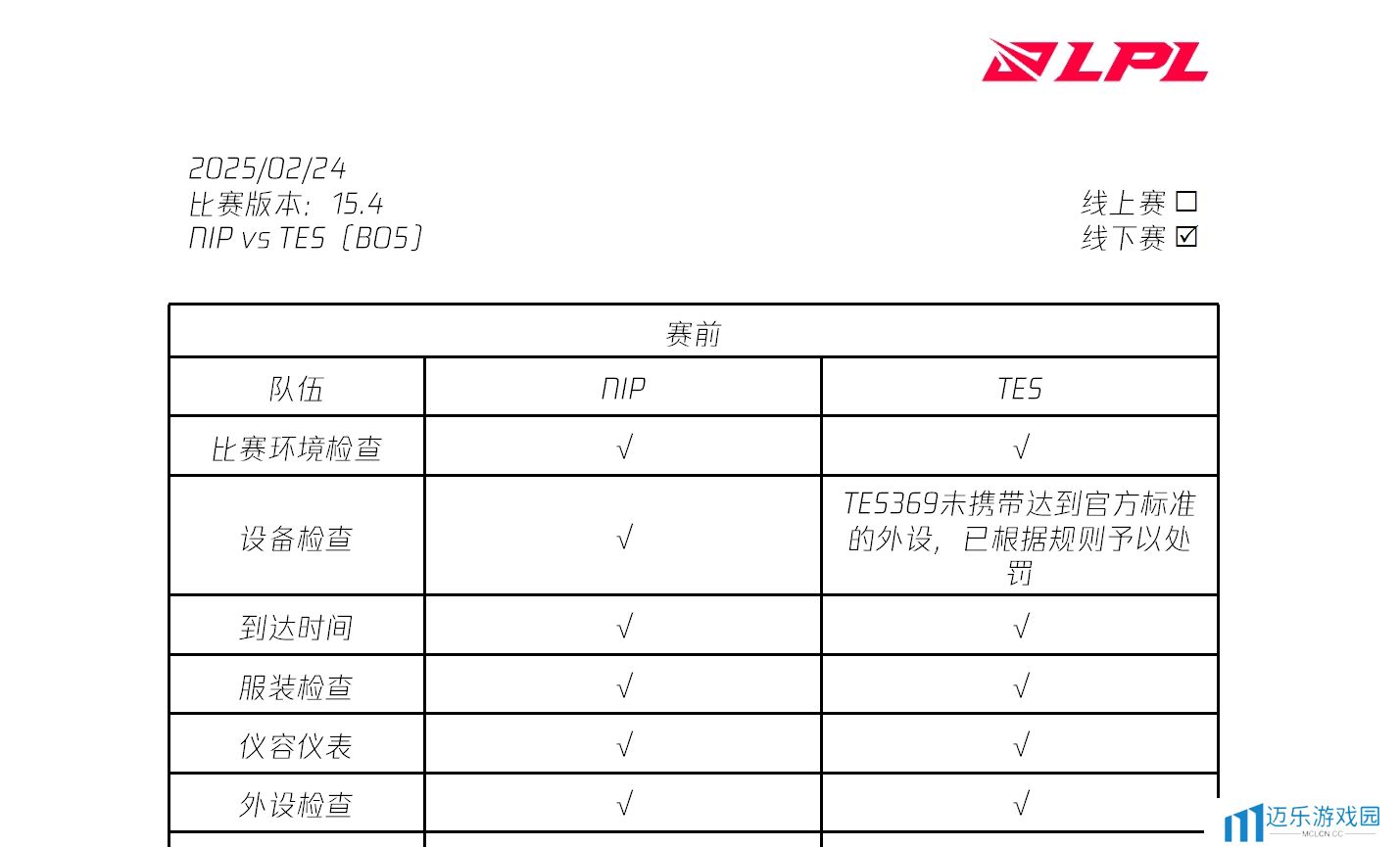 LPL裁判报告更新:Hoya、369、Leave、shanji、Missing设备未达标被罚