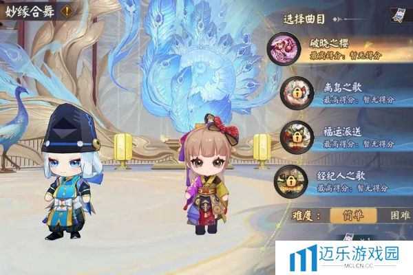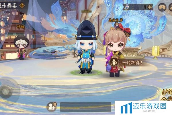 妙缘合舞:活动期间,大人可邀请美依礼芽或活动会场内的其他阴阳师大人一同进行舞蹈挑战。选择相应难度的歌曲并根据节奏点击或滑动音符按钮,享受美妙音乐的同时,向着更高的分数迈进吧!