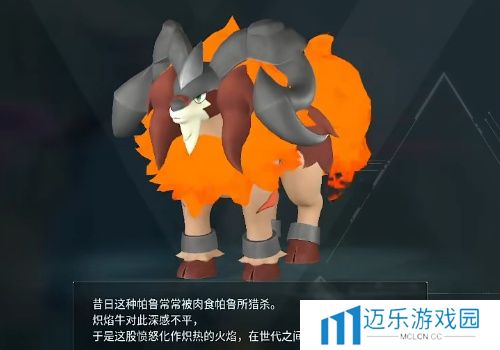 幻兽帕鲁炽焰牛是一只火属性幻兽,外表是橙色的小牛,经常被肉食帕鲁猎杀,愤怒被化作炽热的火焰世代相传,玩家可以在游戏白天的时候前往炽焰牛栖息地抓取获得。