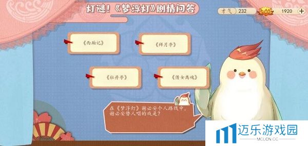 在《梦浮灯》谢必安个人路线中,谢必安替人唱的戏是?_梦浮灯灯谜答案一览