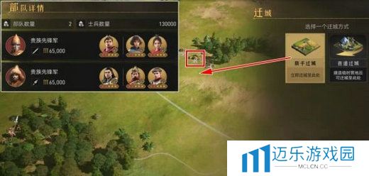 8级资源地拥有两队65000三级兵的守军,总士兵数量达到130000,在悬殊的兵力差面前,我们需要用到迁城强开的技巧: