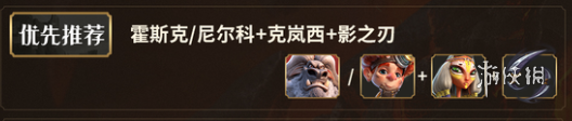 1、阵容选择:霍斯克/尼尔科+克岚西+影之刃