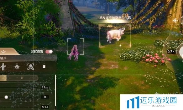 3、来到白牛附近,打开大喵相机,拍摄散步状态的白牛。