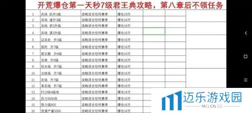 1.爆仓升本技巧(6仓)升7本需要28.8W石头,6级仓库只有16W储存量,正常需要升3级仓库,仓库很贵,前期资源紧张,然后领任务奖励可以超出储存上限!具体操作如下1,完成前7章任务,进第8章后,所有石头的奖励不领。2,按部就班完成8~10章的任务要求(见下图)3,存满6级仓库的16W石头(实际15.4W就够了)4,一次性领取8~10章任务奖励(铁、木、石头各13.4W,加上仓库已有15.4W等于28.8W)石头爆仓直接升7级君王殿