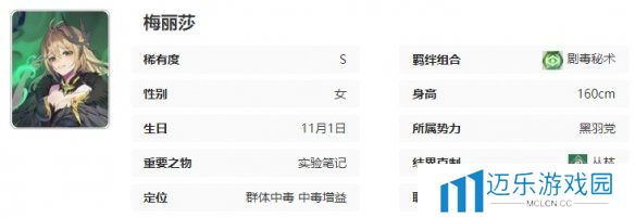 黑羽的千金,腐蚀的羽翼。梅丽莎提高15%攻击和10%生命,对中毒目标伤害提高20%。